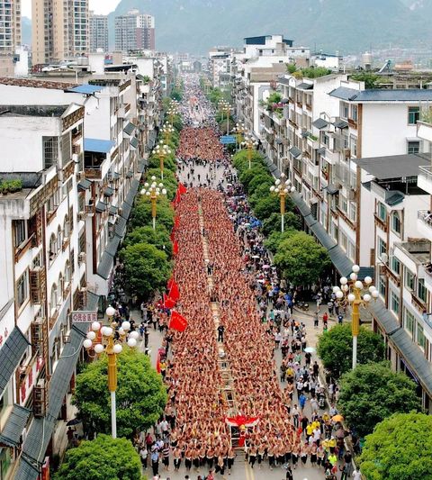 “世界上最长木龙舟”全场近百米,需要近2000人同时抬起,途经施秉县城巡游后,最后在送入㵲阳河,整个过程相当壮观。今年“世界最长木龙舟”巡游展演将于6月15日开启,同时,现场还将举办千名盛装姑妈游行、龙舟入江仪式、民俗展演、音乐会等活动。