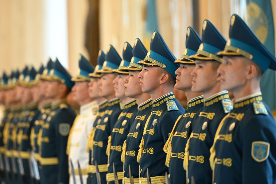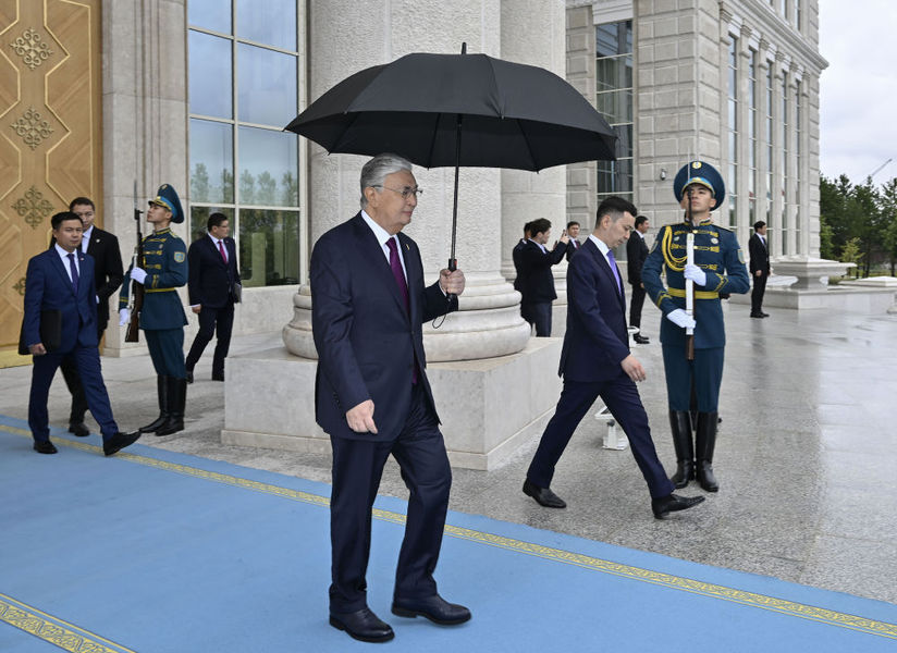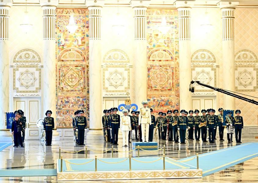 托卡耶夫为习近平举行隆重欢迎仪式。总统府大厅气势恢宏,礼兵威武挺拔。两国元首分别同对方陪同人员一一握手致意。两国元首登上检阅台,军乐团奏中哈两国国歌。习近平在托卡耶夫陪同下检阅仪仗队。