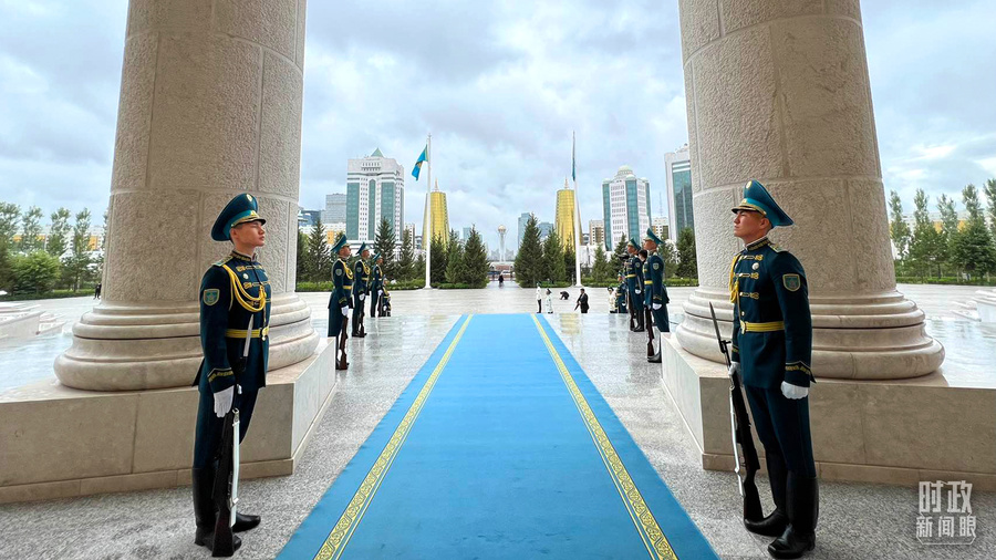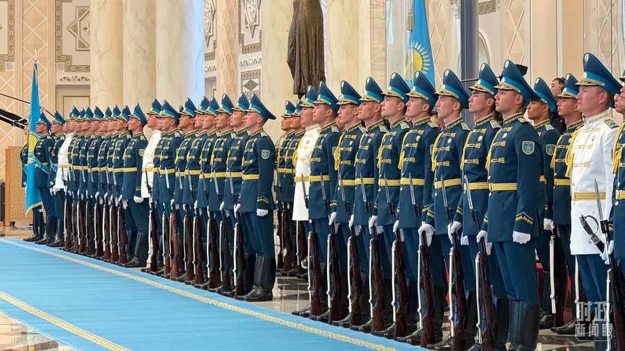 △哈萨克斯坦以最高礼仪欢迎习近平主席。(总台央视记者 张洛嘉拍摄)