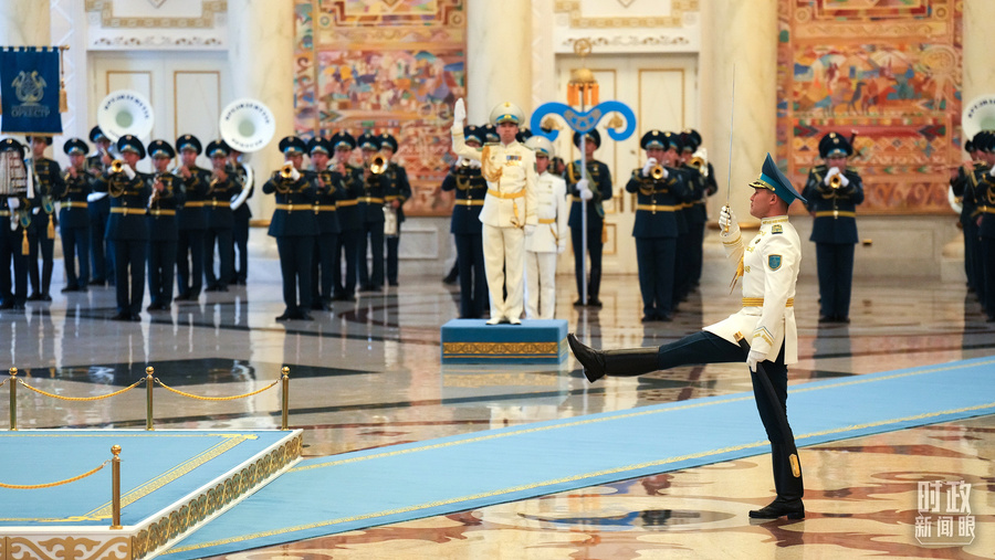 △哈萨克斯坦总统府礼兵。(总台国广记者 李晋拍摄)