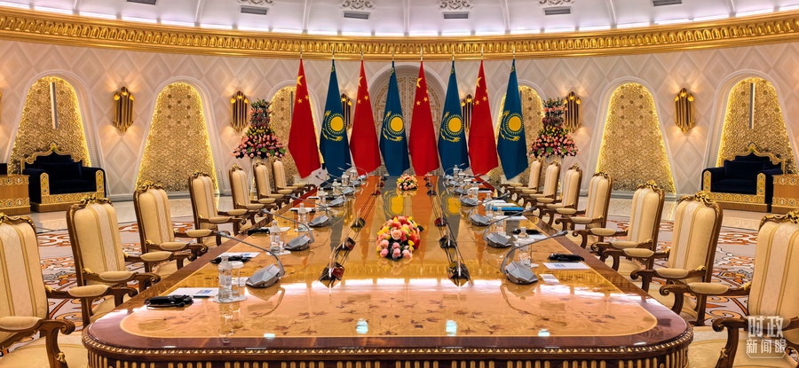 △中哈元首大范围会谈开始前的现场。(总台央视记者 马超拍摄)
