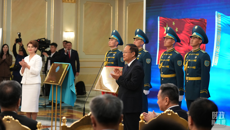 △7月3日,中哈元首共同见证两国文化中心和北京语言大学哈萨克斯坦分校揭牌。(总台国广记者 李晋拍摄)