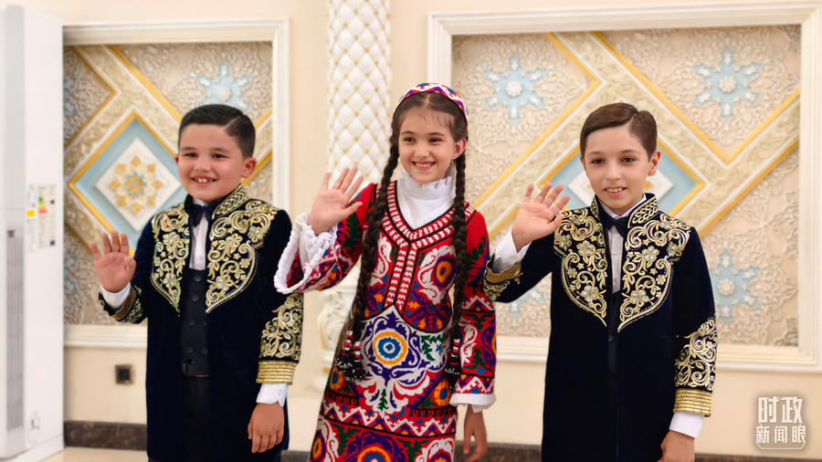 △迎宾仪式上身着民族盛装的塔吉克斯坦青年。(总台记者李晋拍摄)