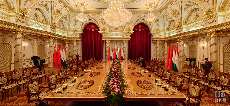 △中塔元首大范围会谈开始前的会场。(总台央视记者段德文拍摄)