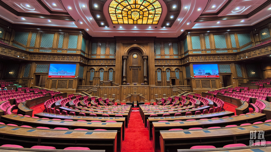 △中方援建塔议会大楼内的联席议会厅。(总台央视记者陆泓宇拍摄)