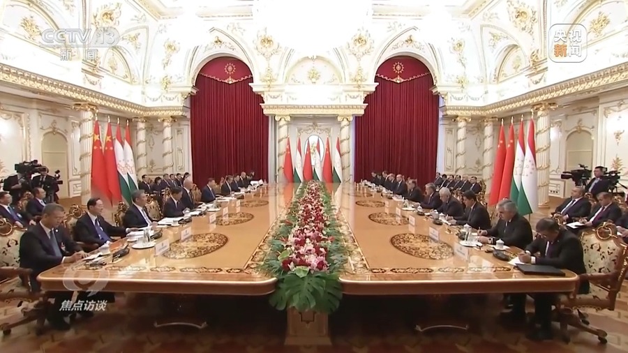 中国现代国际关系研究院欧亚研究所所长 丁晓星:“元首外交一直在中国和中亚国家关系里发挥着重要的引领性作用,拿中塔关系来讲,习主席这次是第三次访问塔吉克斯坦,塔吉克斯坦总统拉赫蒙多次来过中国,和习主席有15次会见,建立了深厚的个人友谊和良好的工作关系,对于中塔的战略引领作用非常突出。”
