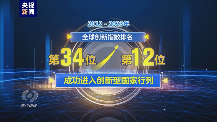 2012—2023年,我国全社会研发经费投入从1.03万亿元增长到3.3万亿元;全球创新指数排名从第34位上升到第12位,成功进入创新型国家行列。
