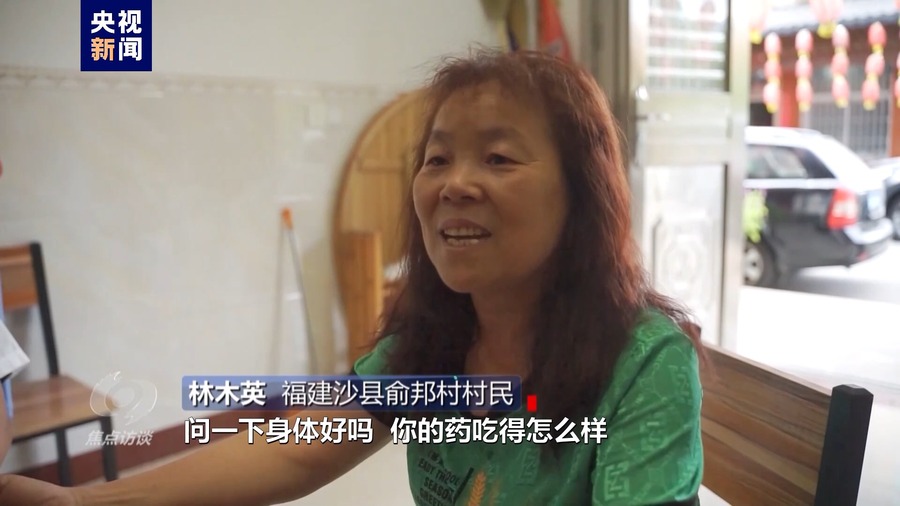 福建沙县俞邦村村民 林木英:现在医生很好,都会来找我们,来问一下身体好吗?你的药吃得怎么样?