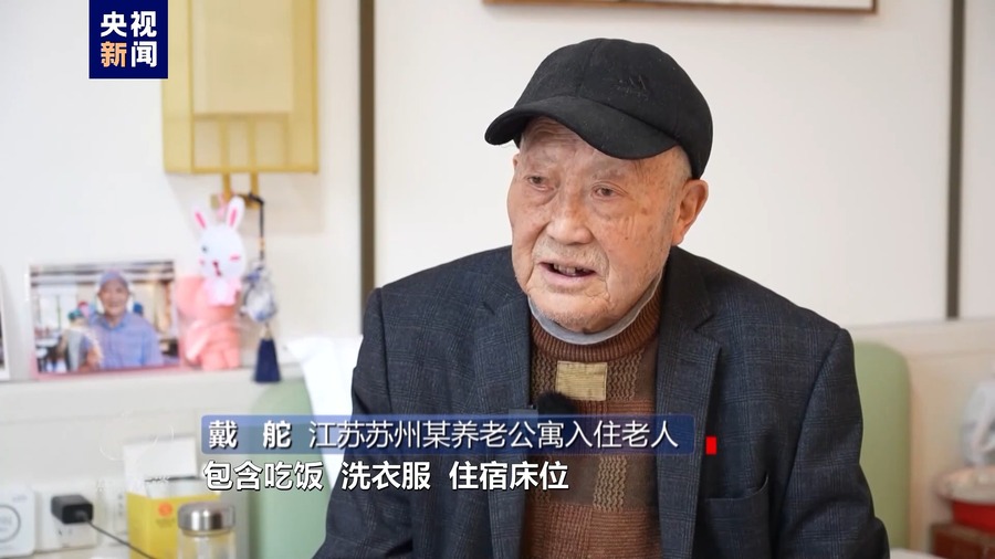 江苏苏州某养老公寓入住老人 戴舵:包含吃饭、洗衣服、住宿床位,负担减轻了,生活上方便了。