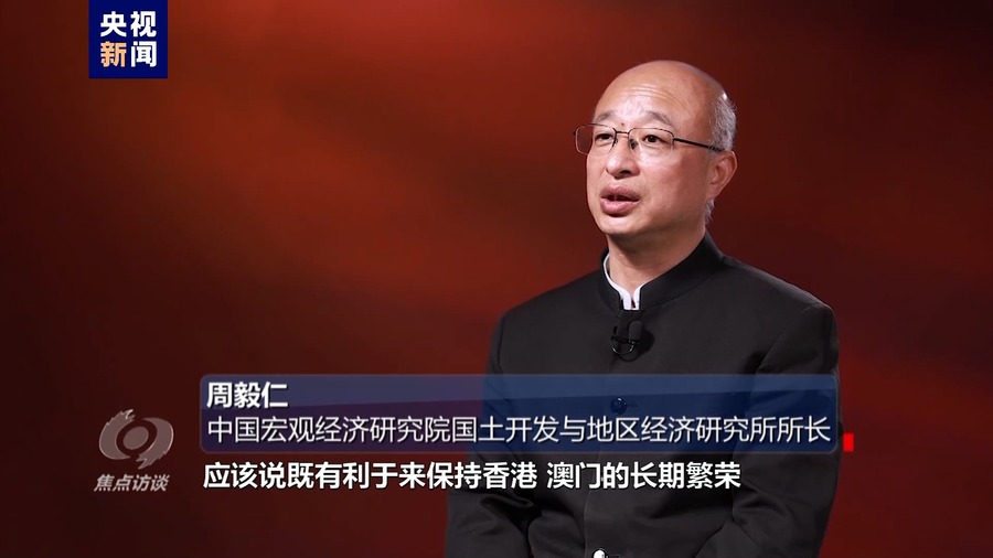 中国宏观经济研究院国土开发与地区经济研究所所长 周毅仁:推进粤港澳大湾区共同的发展,应该说既有利于来保持香港、澳门的长期繁荣,也有利于带动内地的发展。