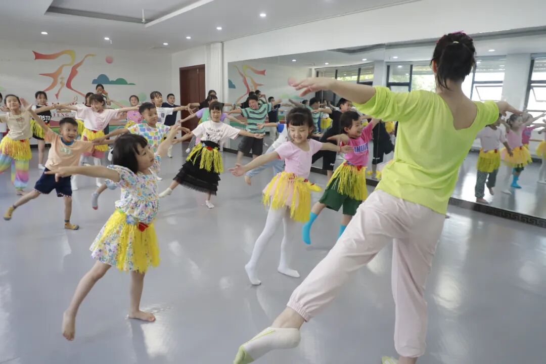 “小朋友们,我们一起跟着音乐动起来……”7月23日下午14时,记者在马槽社区某艺术培训机构的舞蹈室看到,20余个少年儿童在老师的引导下,开心地舞着。