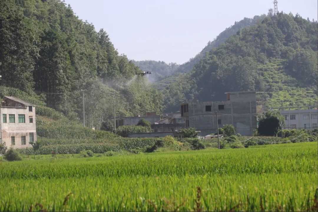眼下正值水稻生长的关键时期,随着各种水稻病虫害、高温病频发,宁谷镇在市农业农村局的资金支持下购入管护农药,对水稻病虫害进行重点防治,并与贵州省安顺市一块田农机服务专业合作社合作,利用无人机进行田间管护,通过科技手段助力水稻品质保障、产量提升,为粮食安全保驾护航。