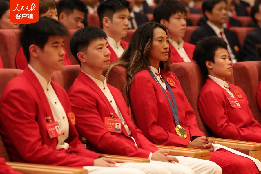 游泳运动员潘展乐最后一棒实现逆转,比赛尽展志气、锐气、底气。总书记勉励他:“创造了世界纪录,希望你再接再厉、再创佳绩。”张雨霏胸前挂着一堆奖牌,那是多少心血换来的,总书记笑问奖牌的分量。