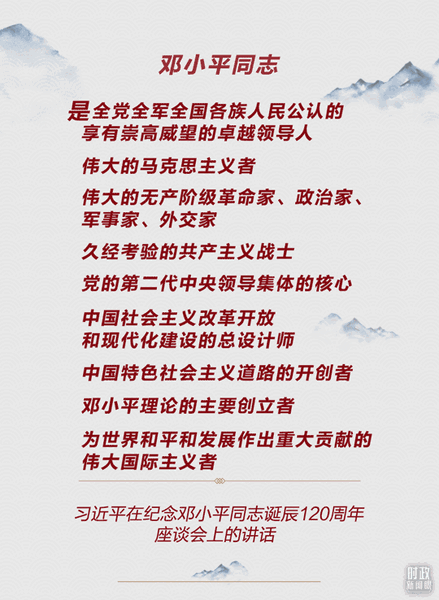 今年8月22日,是邓小平同志诞辰120周年纪念日。当天上午,中共中央举行纪念邓小平同志诞辰120周年座谈会,习近平总书记发表重要讲话。