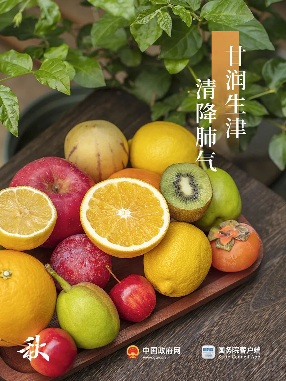 秋分时节,宜常食甘润生津和清降肺气的新鲜果蔬,如苹果、秋梨、石榴、柑橘、柿子、山楂、葡萄、百合、莲子、银耳等。