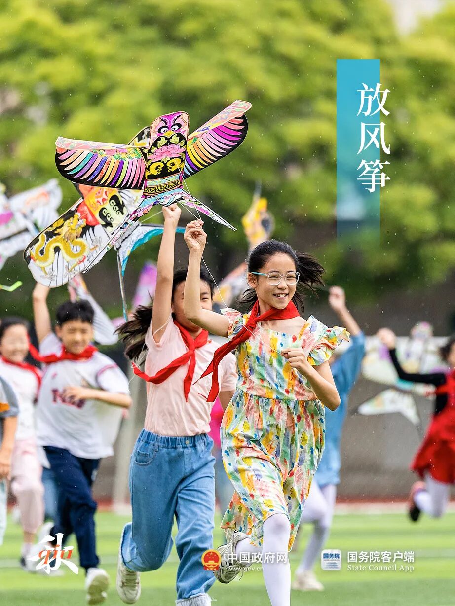 秋分时节是放风筝的好时候,天气晴朗舒畅,大人和孩子们一起玩。