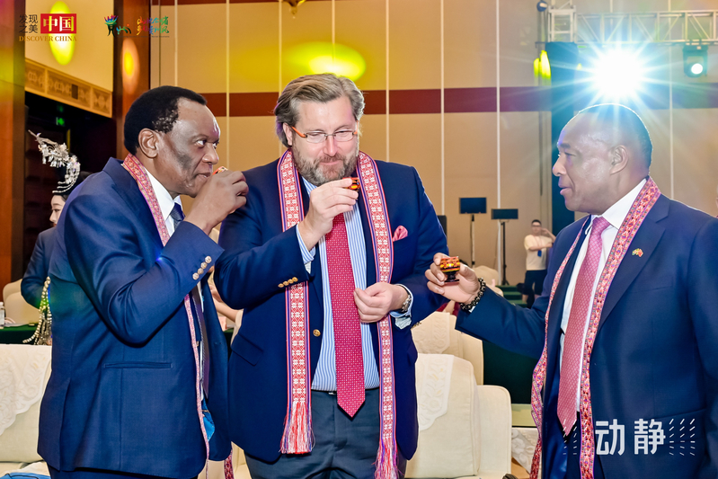 9月26日,“发现中国之美·相约贵州村超”贵州文旅推介会在贵阳市举行。会上,文化和旅游部国际交流与合作局副局长刘全出席会议,贵州省人民政府副省长蔡朝林致欢迎辞,来自阿根廷、多米尼克、克罗地亚、南非、哥伦比亚、格林纳达、摩洛哥、墨西哥、秘鲁、古巴等15个国家的7名驻华大使、24名驻华外交官共同出席。文化和旅游部国际交流与合作局,贵州省文化和旅游厅、贵州省商务厅、贵州省外事办、贵州省体育局、贵阳市政府、黔东南州政府、省内文旅企业负责人、新闻媒体等参会。