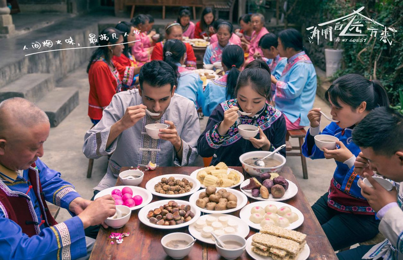 接着,浩明跟随紫曦继续向北,来到了黔北大地上一个古老民族聚居地,在这里,他们感受了有盛大热情的宴席——三幺台,茶席、酒席、饭席,尽显色香味俱全,饱含着仡佬族人款待远道而来客人的热情。