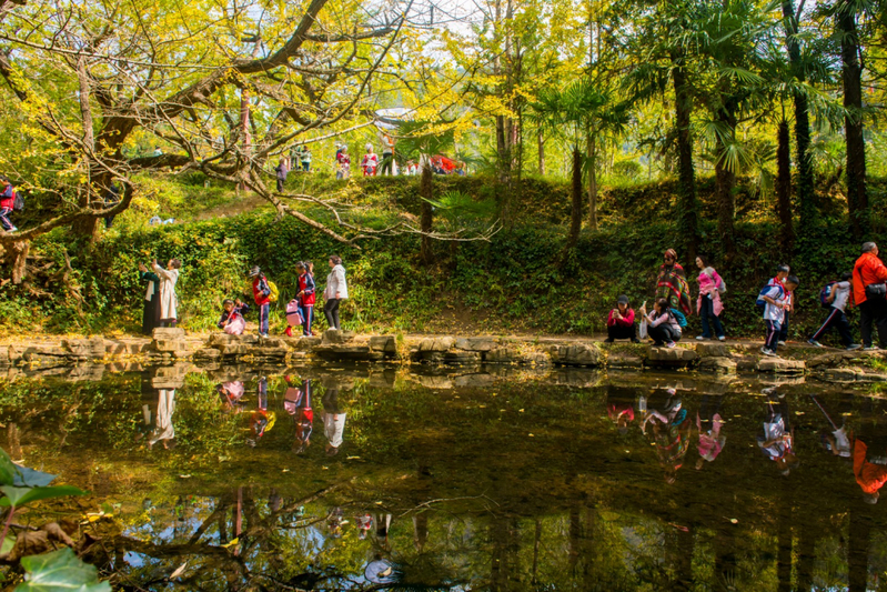 每年的10月中下旬至11月中下旬,是妥乐古银杏景区的最佳观赏期。在这段时间里,妥乐天气阴晴交替,时而云蒸霞蔚,时而阳光灿烂,如梦似幻的景色让人目不暇接、流连忘返。