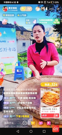 在直播中,村民扎堆等待展示自家的农产品,谭丽在直播间大力推荐干洋芋片、干豇豆、黄花菜、干辣椒、土蜂蜜等农村特色产品,掀起直播间粉丝抢货热潮。