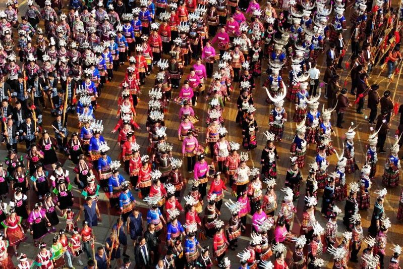 祭尤节系列活动现场,当游客与当地群众手拉手,一起唱起悠扬的民歌,跳起轻盈的锦鸡舞,吹奏起欢快的芦笙,丹寨县文旅融合发展已结出丰硕成果。