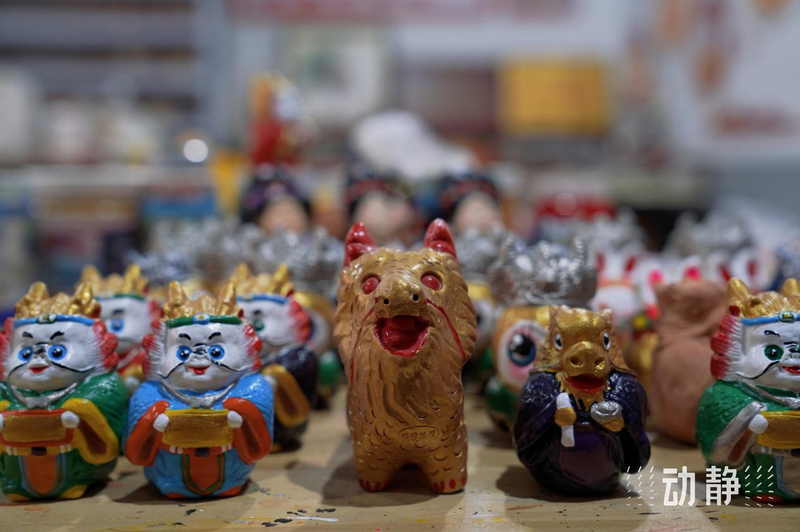 在泥哨造型塑造上,姚德波不断刷新着自己的艺术创造力。他并未被传统泥哨的固有造型束缚,而是在深入领会传统造型背后文化意义的基础上不断创新。在题材上,不仅包括传统“十二生肖”,还有各种人物、动植物等,更衍生出冰箱贴、汽车挂件等文创产品。