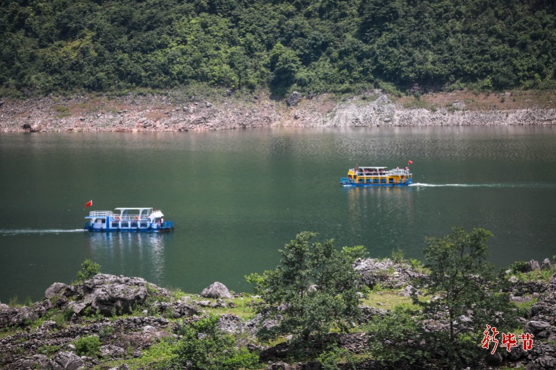 清风徐来,微波荡漾,一艘艘游船点缀在乌江源百里画廊景区,与鳞次栉比的房屋相映成趣,共同编织出一幅人与自然和谐共生的美丽画卷。