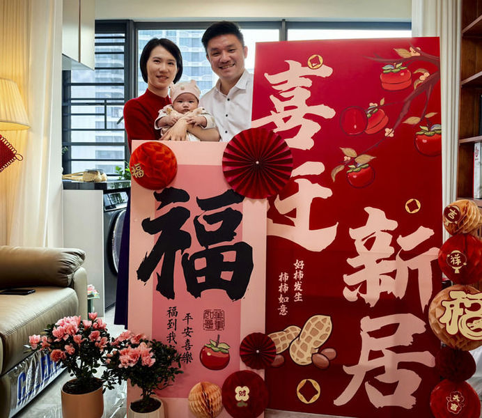 澳门创业青年黄滋才(右)和家人在“澳门新街坊”的家里合影(2024年12月6日摄)。新华社发