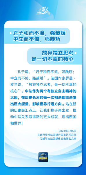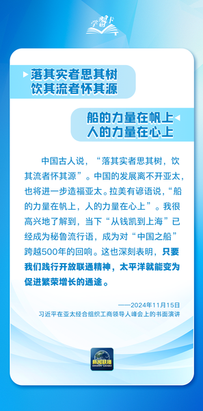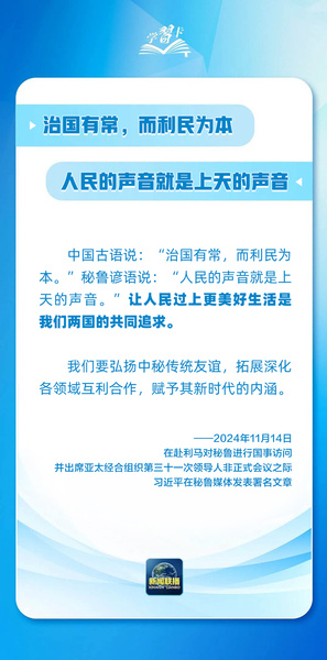 11月23日,习近平主席结束拉美之行,此访历时11天,横跨太平洋,行程数万里,为今年中国元首出访外交画上了圆满句号。“文明的智慧让我们理念相近、心灵相通。”“交流互鉴是文明发展的本质要求,也是推动人类文明进步和世界和平和发展的重要动力。”习主席这些论述得到国际人士高度评价。2024年,习主席在接待外宾及出访时的讲话和署名文章中,每每巧妙援引中外经典谚语名句,以古喻今,言近旨远,用语言中蕴藏的大智慧,架起了中国与世界“国相交”“民相亲”的连心桥。一起学习↓