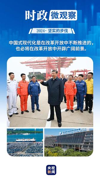 一年来,考察重庆国际物流枢纽园区,总书记要求,要把这一标志性项目建设好、运营好,“带动西部和内陆地区高水平对外开放”;赴山东日照港,总书记鼓励改革开放的排头兵,“我们应当坚定一种信念,中国的改革开放之路一定可以成功”;到厦门自贸片区,总书记寄语福建和厦门,稳步推进制度型开放,对接国际高标准深耕细作,多出一些制度性、政策性成果,为扩大高水平对外开放再立新功……