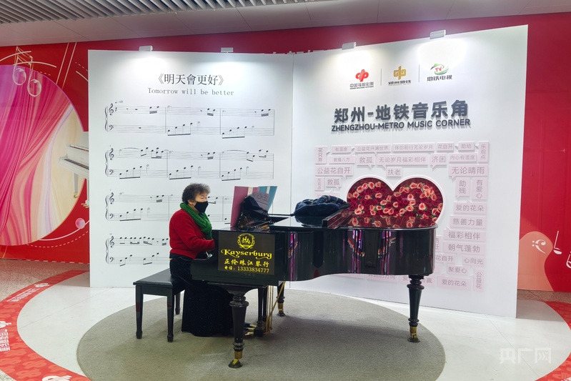 市民在地铁音乐角弹钢琴(央广网记者 郝振青 摄)