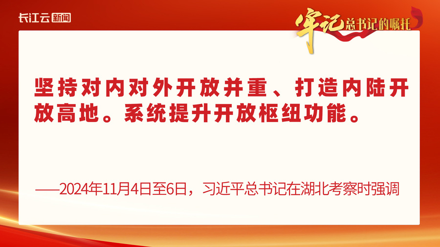 习近平总书记在湖北考察时,要求湖北“打造内陆开放高地”“系统提升开放枢纽功能”。