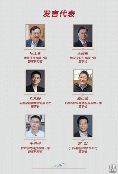 座谈会上,6位民营企业负责人代表先后发言,就新形势下促进民营经济发展提出意见和建议。《时政新闻眼》注意到,发言代表涵盖从“40后”到“90后”老中青三代。他们所在的企业来自不同领域行业,有着“科技”“创新”的鲜明标签。