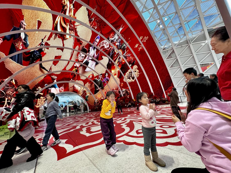 乙巳蛇年春节期间,影迷在《哪吒之魔童闹海》巨幅海报前拍照打卡。
