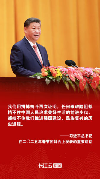 “我们用拼搏奋斗再次证明,任何艰难险阻都挡不住中国人民追求美好生活的前进步伐。”习近平总书记在二〇二五年春节团拜会上发表的重要讲话,令人振奋,催人奋进。