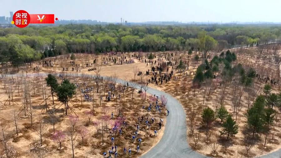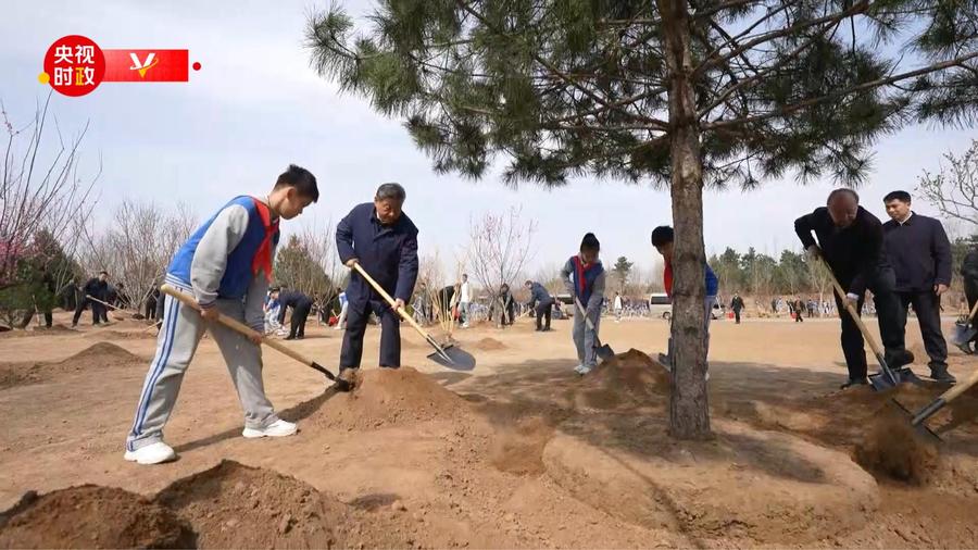 4月3日,习近平等党和国家领导人来到北京市丰台区永定河畔,同干部群众一起参加义务植树。