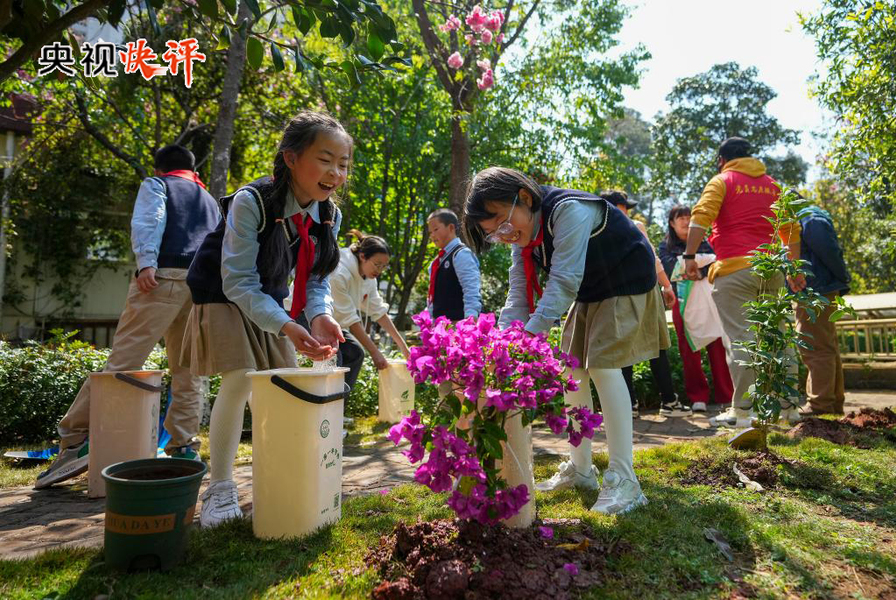 早春三月春意浓,正是植树好时节。党的十八大以来,习近平总书记率先垂范,每年都同首都干部群众一起参加义务植树活动,引领推动全社会不断深化国土绿化事业。在习近平生态文明思想指引下,美丽中国建设成效斐然。数据显示,2024年,我国完成造林6669万亩、种草改良4836万亩。其中,治理沙化石漠化土地3683万亩。目前,我国森林覆盖率已经超过25%,贡献了约25%的全球新增绿化面积,成为全球增绿最快最多的国家,人工林面积居世界第一。从塔克拉玛干沙漠戴上“绿围脖”,到科尔沁沙地重现草原风光;从塞罕坝创造“荒原变林海”的绿色奇迹,到“三北”工程攻坚战迈出坚实步伐……放眼神州,美丽中国绿色底色更足,人民群众更加直接、真切地感受到生态环境持续改善带来的幸福感。