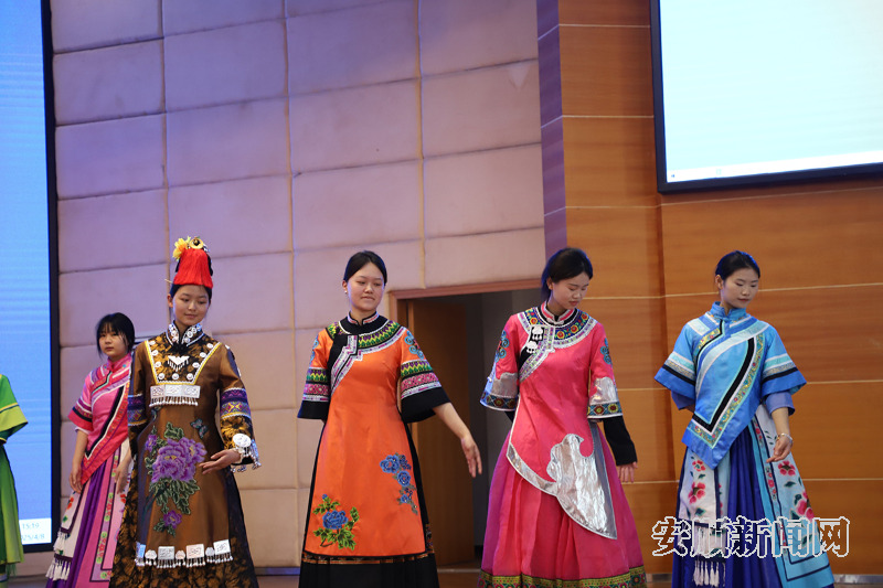 排练现场,安顺学院艺术学院航空艺术专业大一学生唐妮和李安琦正在进行走秀排练。她们身着精美的屯堡服饰,身姿挺拔,步伐坚定有力,自信满满地展示着屯堡服饰的风韵。