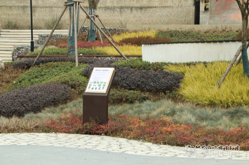 公园中的海绵城市植物及科普立牌