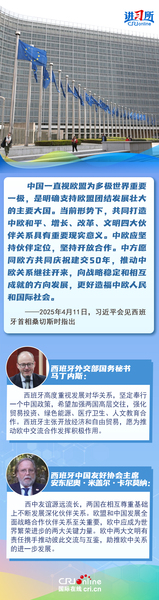 今年是中西全面战略伙伴关系建立20周年,也是中欧建交50周年。多年来,中西两国领导人保持密切互动,秉持互尊互信、互利共赢精神,两国在深化贸易、投资、科技创新、绿色能源等领域取得丰富合作成果,双边关系走在中国同欧洲国家关系前列。在西班牙人士眼中,良好的对华关系对西班牙、欧洲和世界具有重要意义,将会为两国人民带来更多实实在在的福祉,也将共同创造更美好的未来。