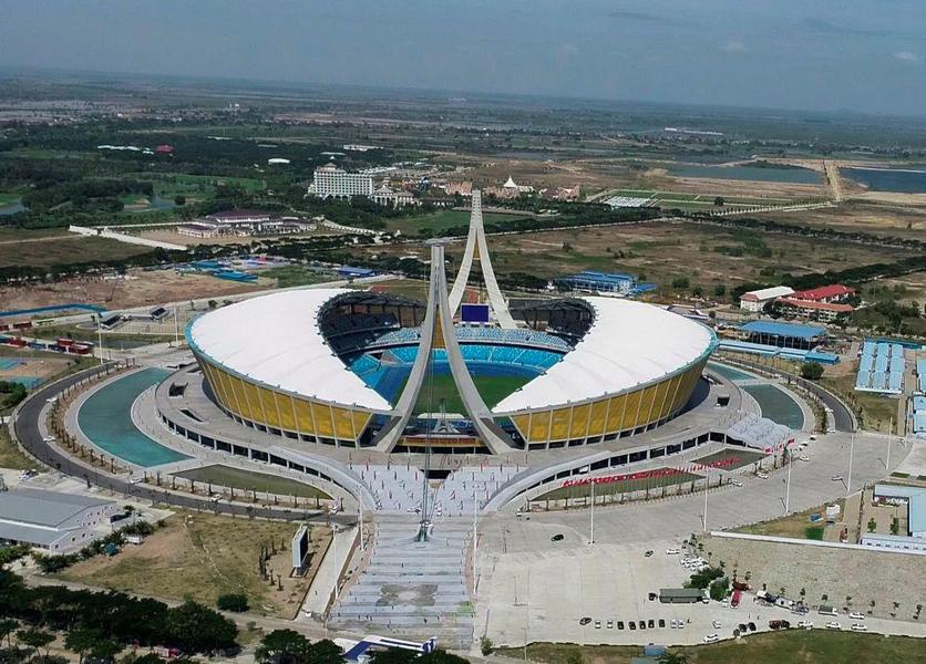 △由中国援建的柬埔寨国家体育场项目于2021年12月18日正式启用。