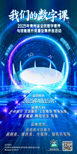 为贯彻落实《提升全民数字素养与技能行动纲要》,中共贵州省委网络安全和信息化委员会办公室与贵州省农业农村厅共同组织开展“2025年贵州省全民数字素养与技能提升‘我们的数字课’资源征集评选活动”,秉持全民参与、创新引领、优质实效、普惠共享的理念,征集一批全民数字素养与技能提升资源,促进交流互鉴,加快提升我省全民数字素养与技能整体水平。