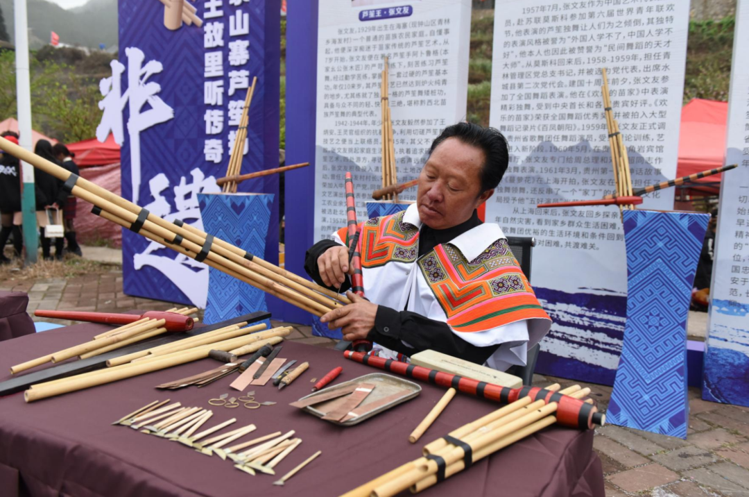 隔壁的芦笙制作体验点,从城区来的中学生围着老匠人刨根问底:“这笙管为什么是六根?”“簧片用竹子好还是铜片好?”“我们学多久才会?”老匠人笑呵呵地拿起半成品吹了一段《火车进苗乡》,孩子们的眼睛瞬间亮了起来。