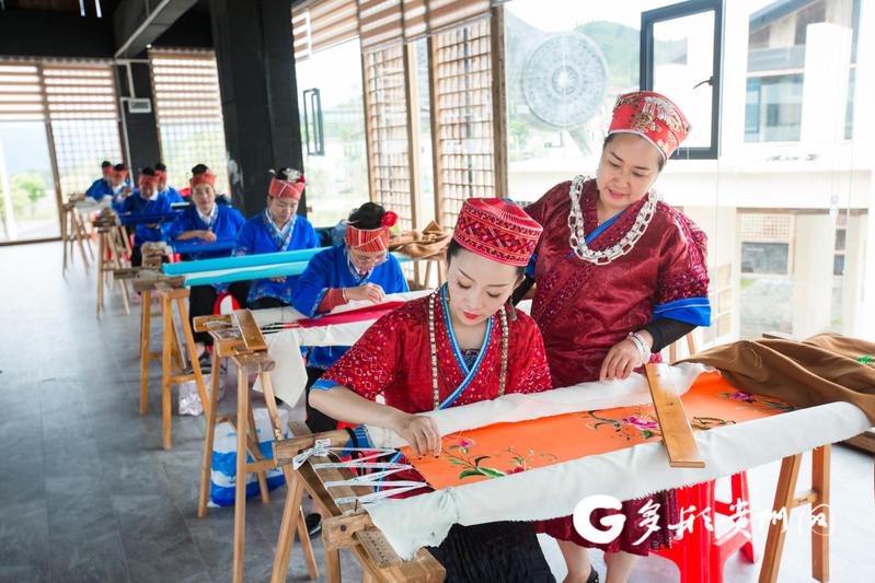 龙禄颖在工坊内指导绣娘
