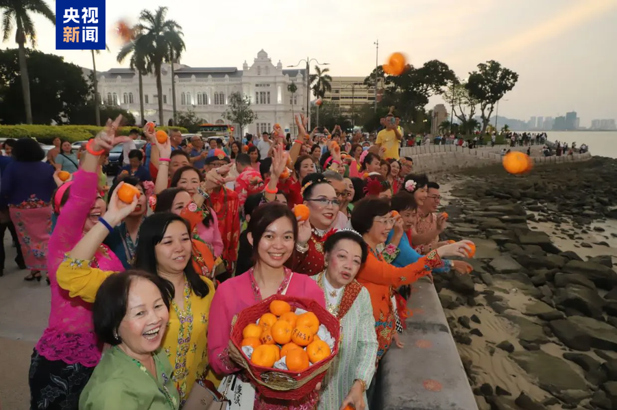 元宵节,槟城姑娘抛柑橘祈姻缘,传统又浪漫。