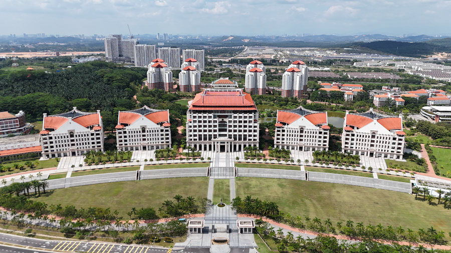 马来西亚雪兰莪州的厦门大学马来西亚分校教学楼全貌(无人机拍摄)。新华社发(厦门大学马来西亚分校供图)