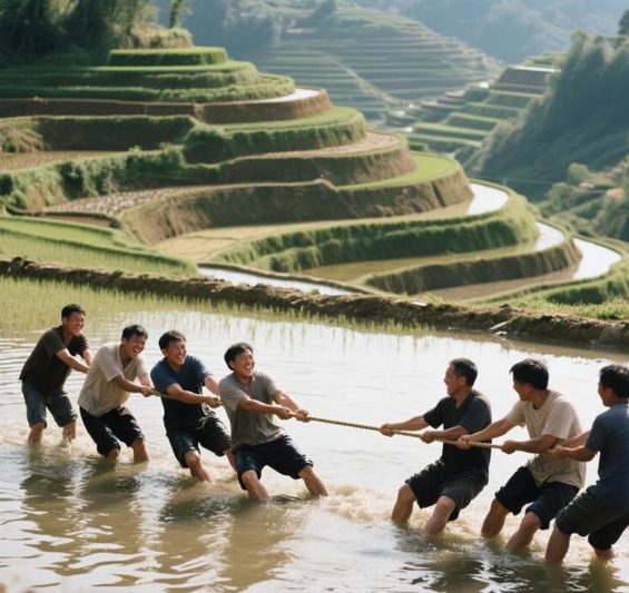 在田间喜乐会,你可以加入“水上竞技场”,与村民组队竞技,梯田水上足球、水上拔河、抓鱼体验、抢鸭子等趣味活动轮番上演,优胜者还将收获当地特色礼品。