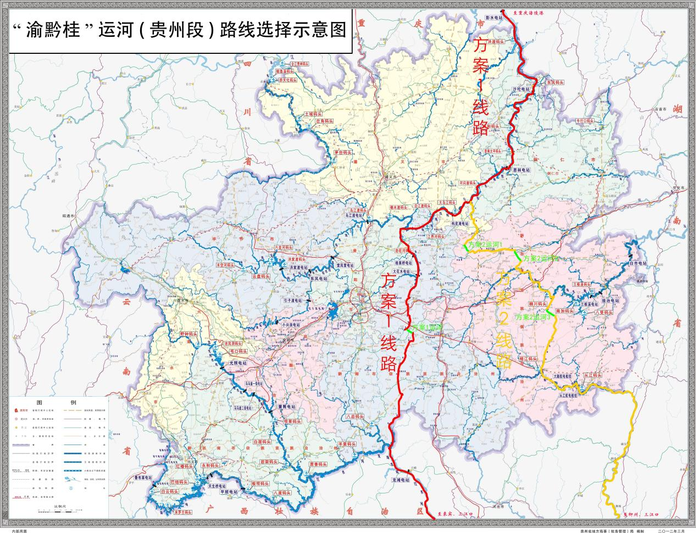 (图)红色线路为“渝黔桂”运河贵州段众多备选方案之一,离省会贵阳最近。