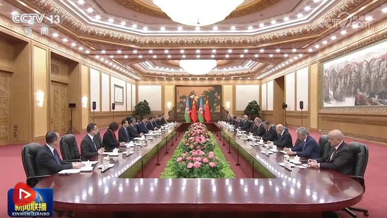 4月23日上午,国家主席习近平在北京人民大会堂同来华进行国事访问的阿塞拜疆总统阿利耶夫举行会谈。会谈后,两国元首共同签署《中华人民共和国和阿塞拜疆共和国关于建立全面战略伙伴关系的联合声明》。