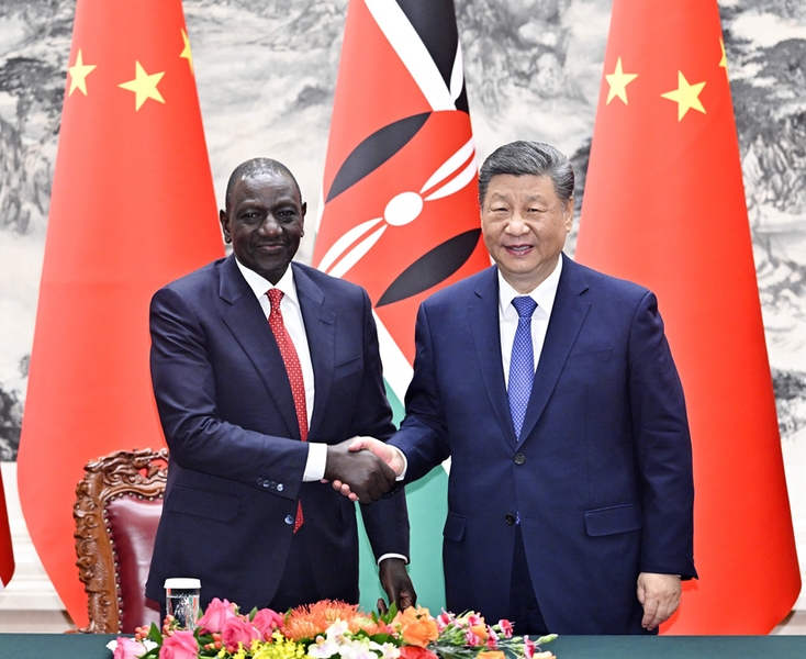 4月24日上午,国家主席习近平在北京人民大会堂同来华进行国事访问的肯尼亚总统鲁托举行会谈。两国元首一致同意将双边关系定位提升至新时代中肯命运共同体。